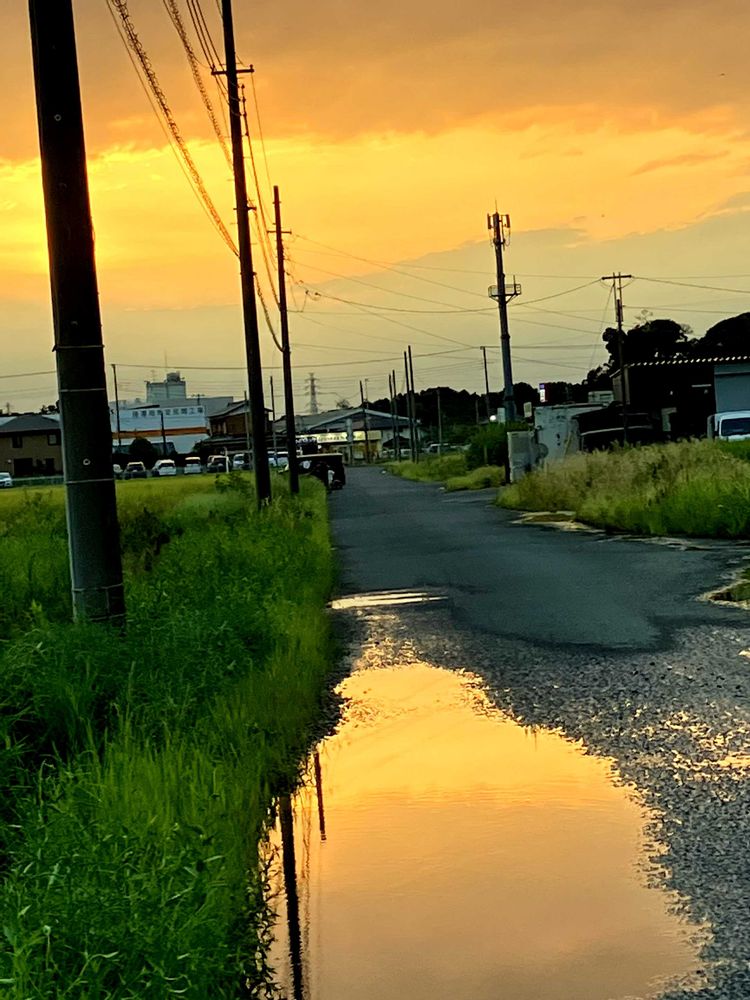 農道の水溜まりは雨だったのでは無い 田んぼの水が流れてた💦