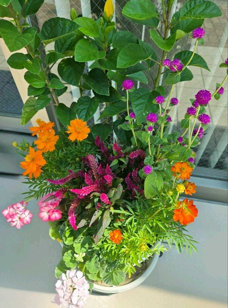 昨日 病院の調剤薬局の入口に元気な寄せ植えがお迎えしてました😊優しい心 😆💕✨