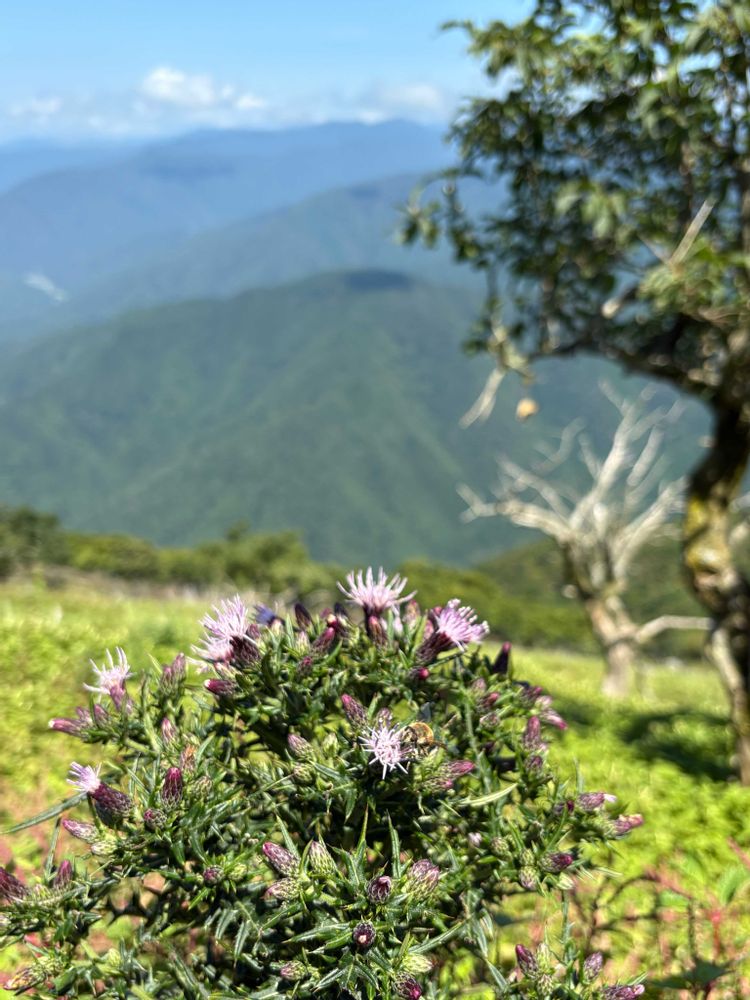 標高1200m以上に当たる山頂付近で見られたコイブキアザミ💜