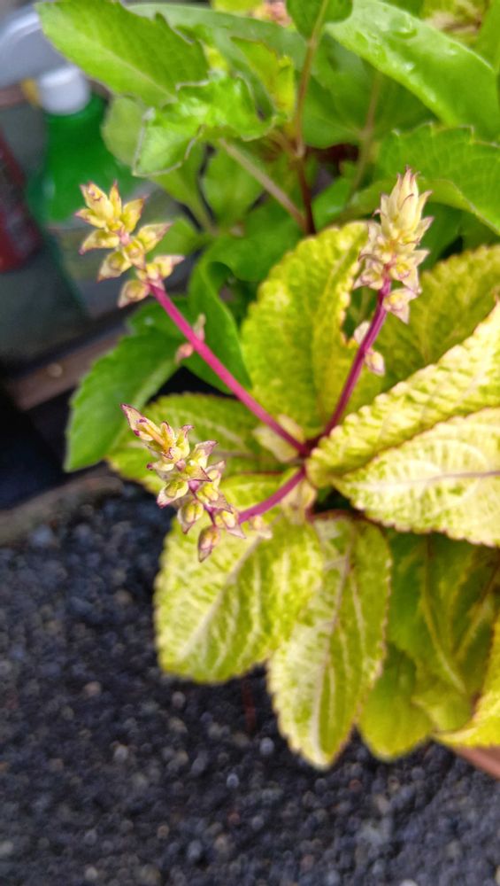 コリウスさんの花です。普通は、1本で、咲きますが、3本で、咲くのは、珍しいです。🤭