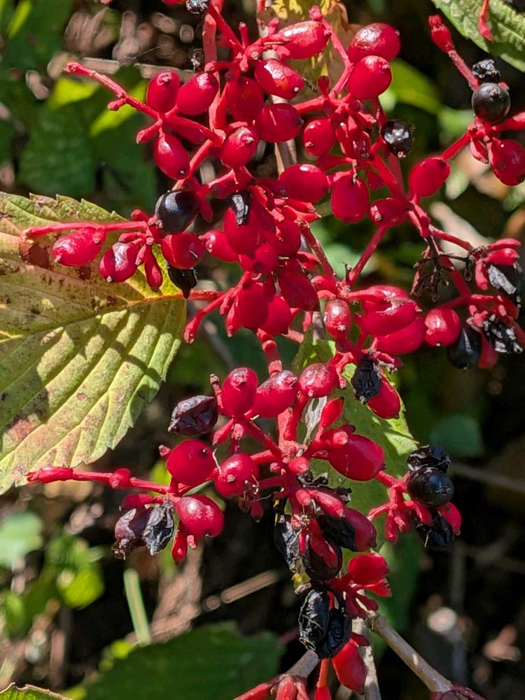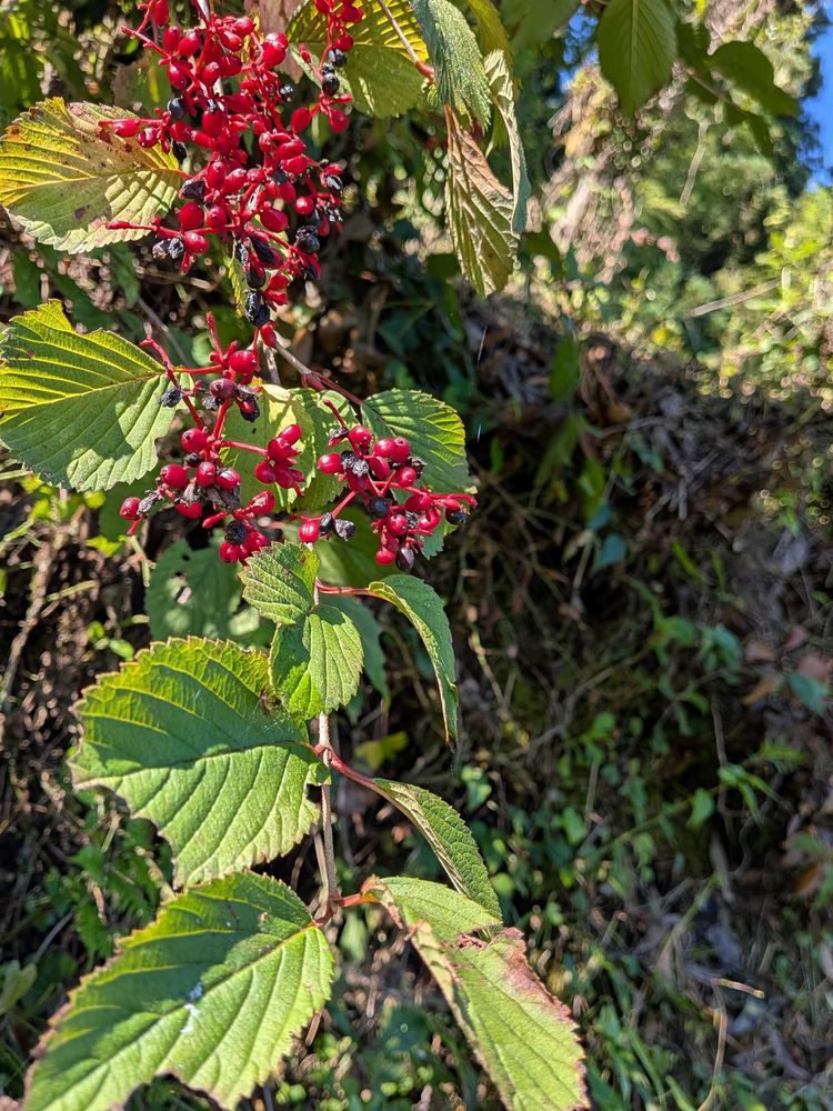 ①② 実家の裏山から 鮮やかな赤い実💖熟すと黒くなり 鳥がついばみに来るそうです。