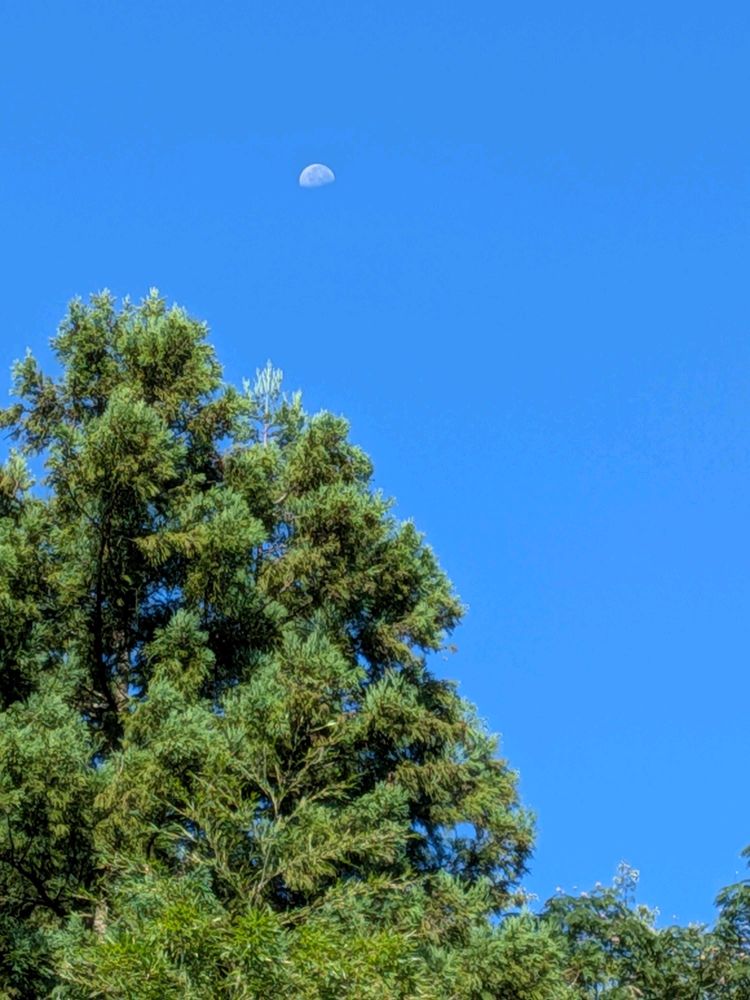 ③ 空を見上げると みごとに 有明の月🌛と晴天夏の青空💙✨