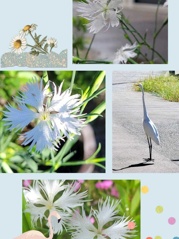 ④⑤白いカワラナデシコが咲いてコラージュしました(..)゛