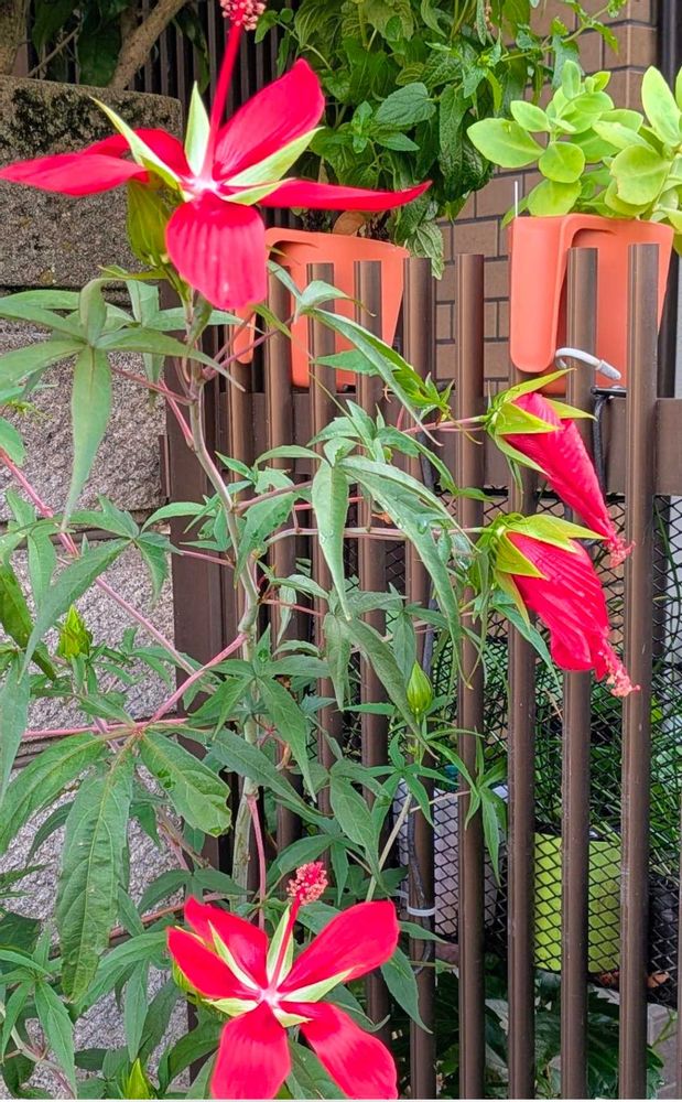 1️⃣昨日咲いたモミジアオイは萎んでます。新しく2輪咲いてます.