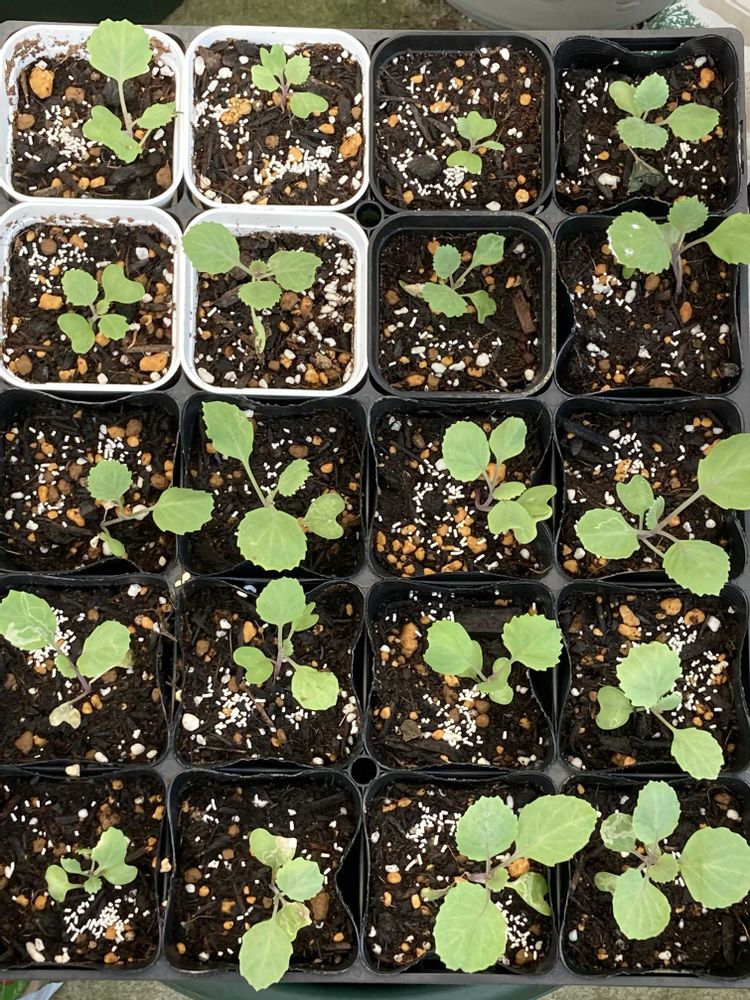 こぼれ種の葉牡丹をポット上げしました˖*♬೨̣̥