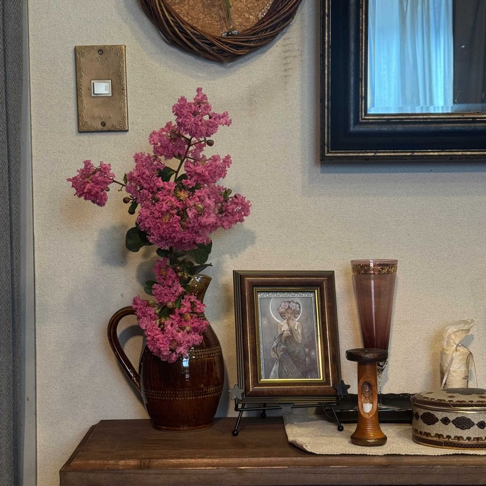 インテリア仏壇「鏡壇ミラリエ」「鏡壇ミロワ」に今日(8/29)の誕生花の「サルスベリ(百日紅)」 を飾ってみました。
