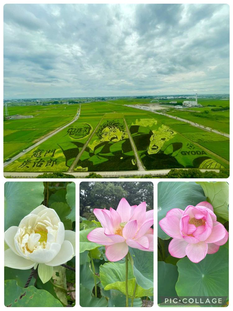 お盆に里帰りした時に、古代蓮の里の世界最大の田んぼアートを見に行って来ました🎶😍今年は、鬼滅の刃の竈門炭治郎🤗タワーから眺める田んぼアートは見事でした(*´꒳`*ノノ゙パチパチ🎶沢山の蓮のお花にも癒されました💕まだまだ暑さが厳しくてGS夏休み中です💦又、落ちついたら少しづつ参加しまーす😆