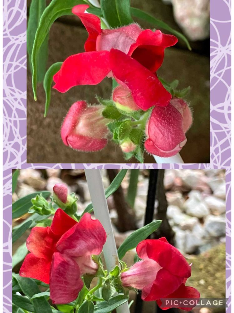 こぼれていた🌱が こんな♥️真っ赤な金魚草でした😍⤴️🎶