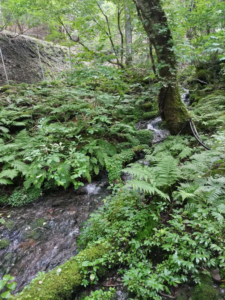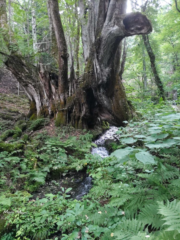 大かつらの後方 豊富な清水が湧き出して、木の下を潜っています💧