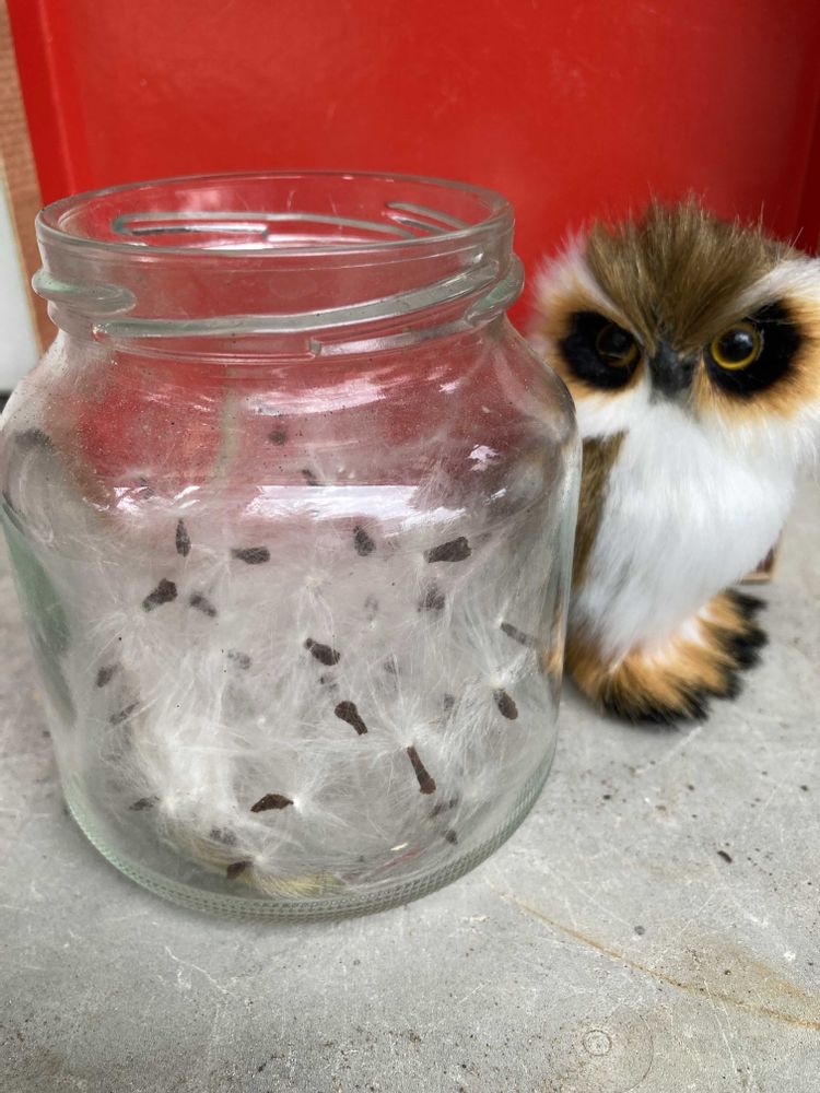 ⑤ ブルースターの種をそっと取って瓶の中に入れました。