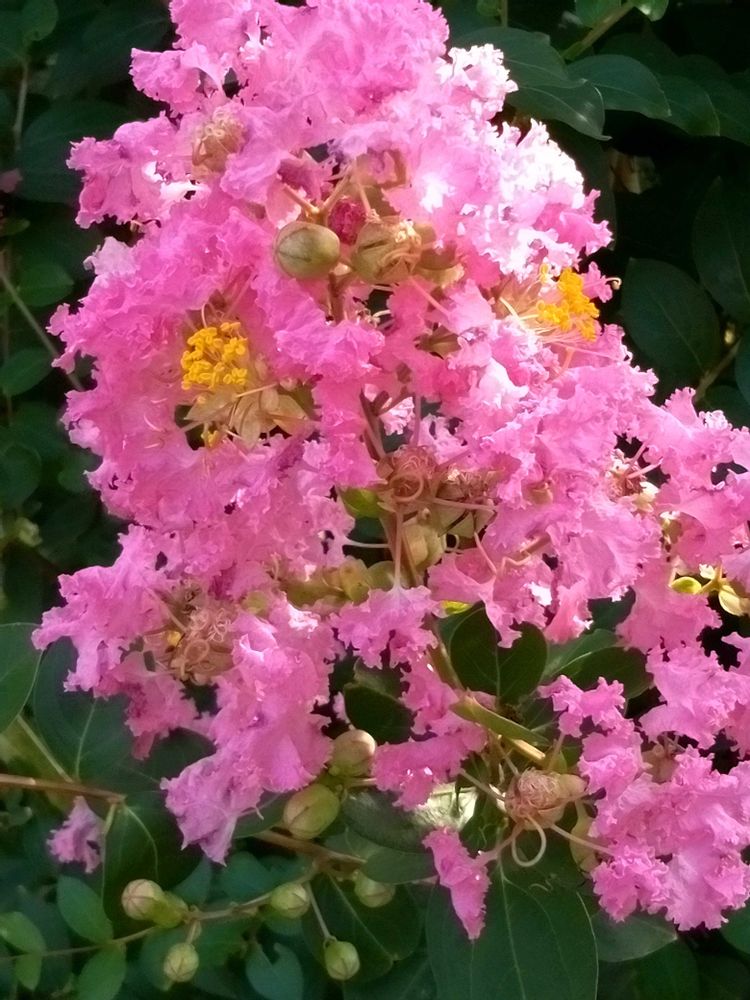 カンカン照りで 1ヶ月以上雨も降らないカラカラの我が家で 元気なサルスベリ達です
