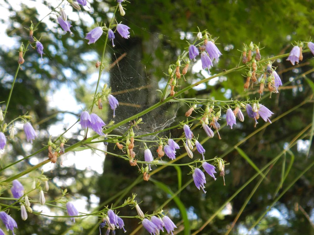 南信州の高原で秋の山野草さん。ツリガネニンジンが薄紫色のその名のとおりの鐘状の花を付けています。