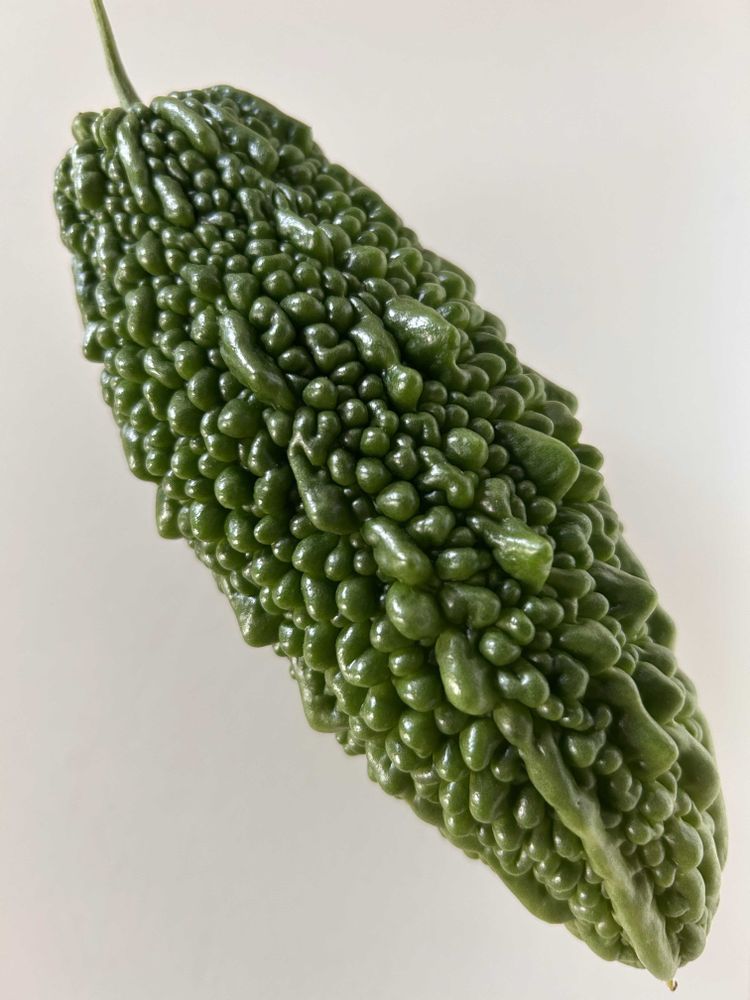 不思議なゴーヤで白っぽい卵🥚ぐらいで手のひらにのる小ささ🤔