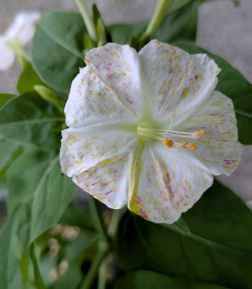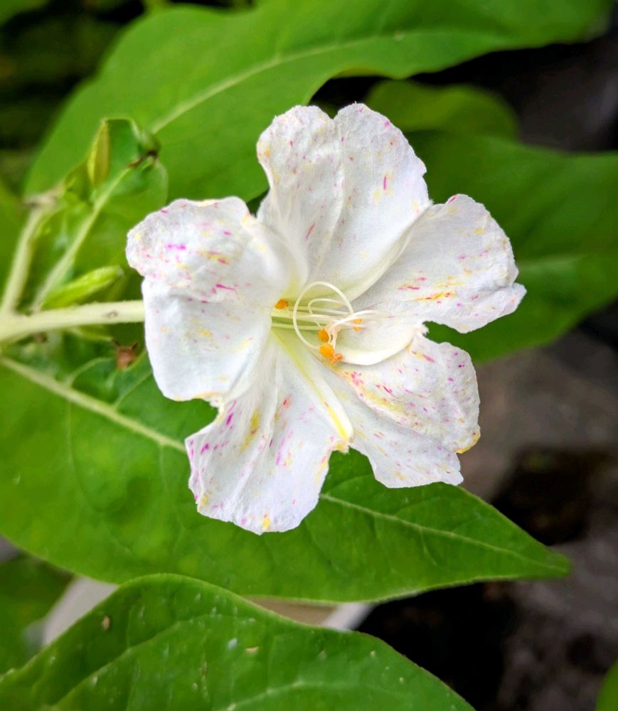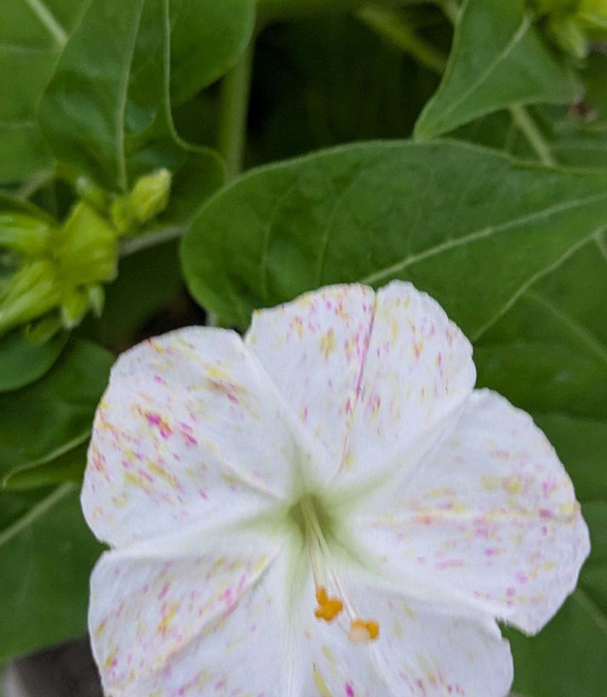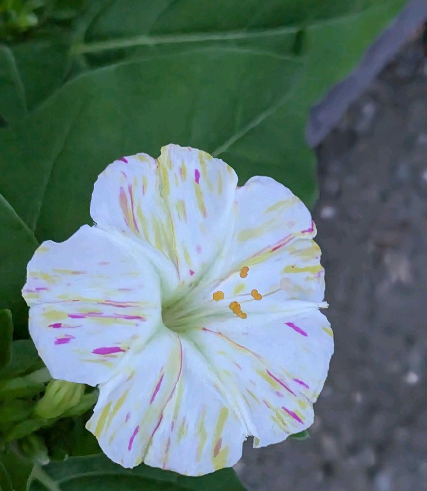 この辺りでは見る事のない黄色の入った3色のオシロイバナ💛🤍🩷