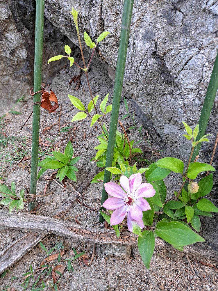 春に咲いたクレマチスの蔓を根元から切ってさっぱりさせたら、また蕾が出て花が咲きました🙌