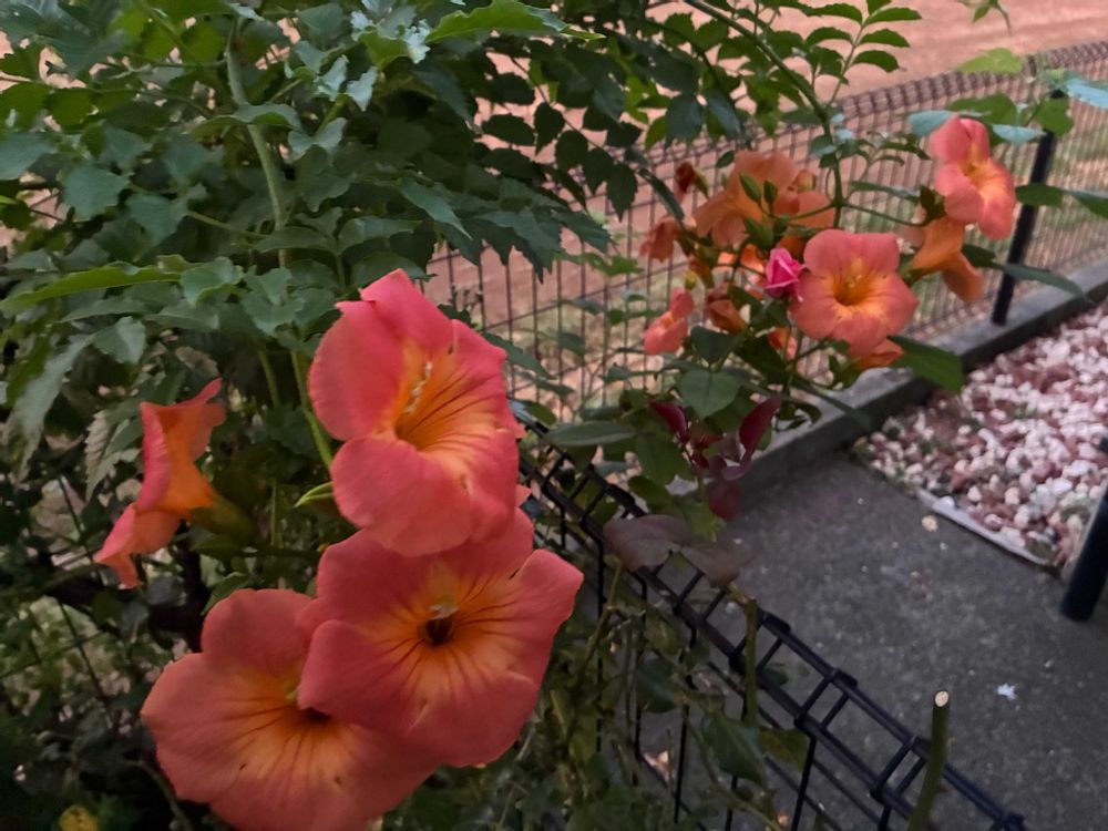 わぁ~ノウゼンカズラのお花の色と夕焼けの色が似てていい感じ✨💖