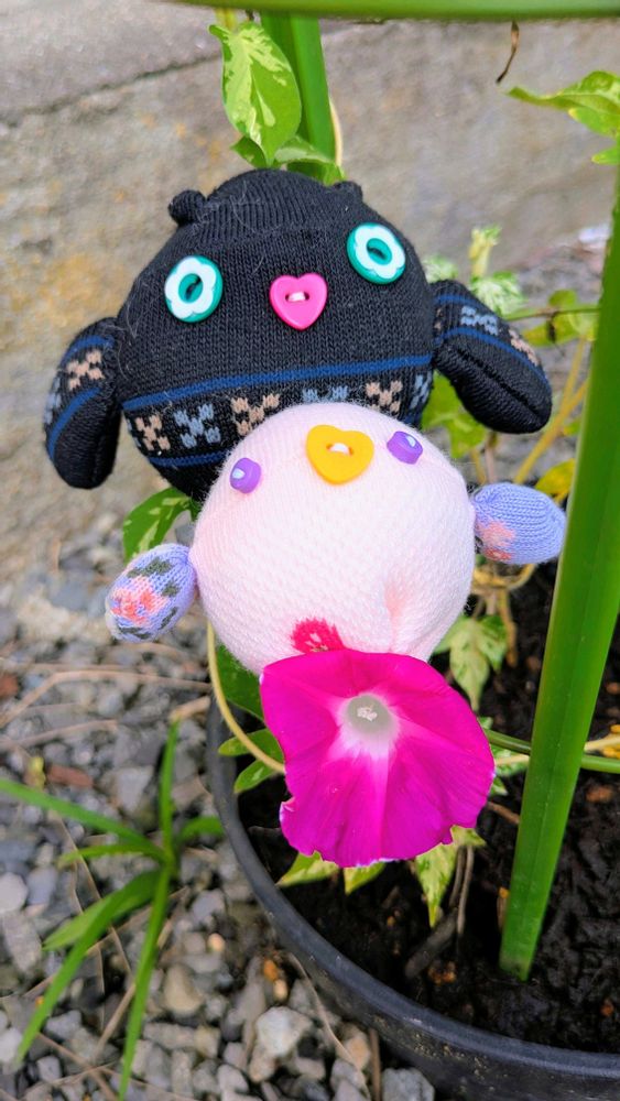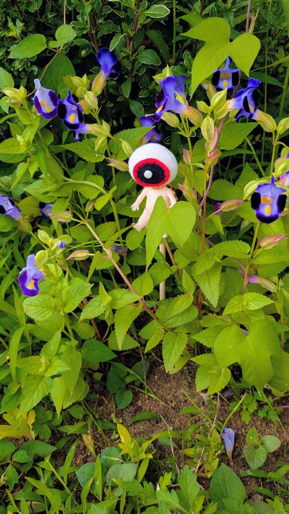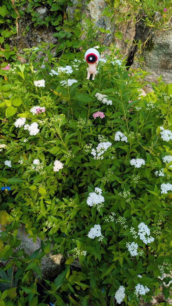 花壇にやっとこさ咲いてる花とのコラボ🦉👁️🗨️