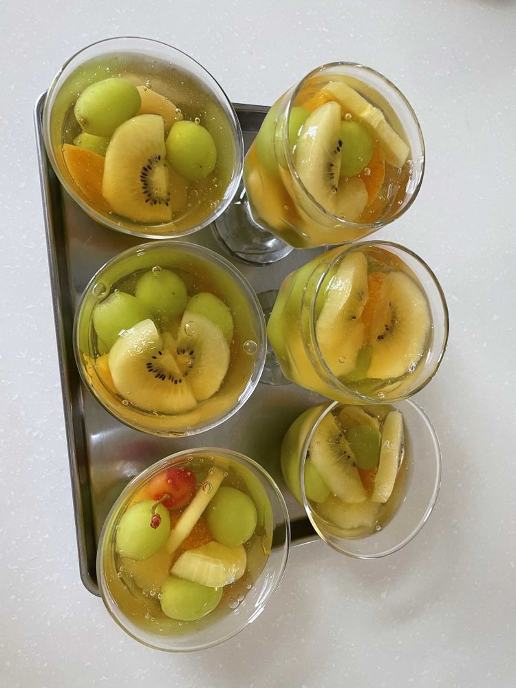 4枚目フルーッあったのでゼリー作りました🍇🍊🥝🍑