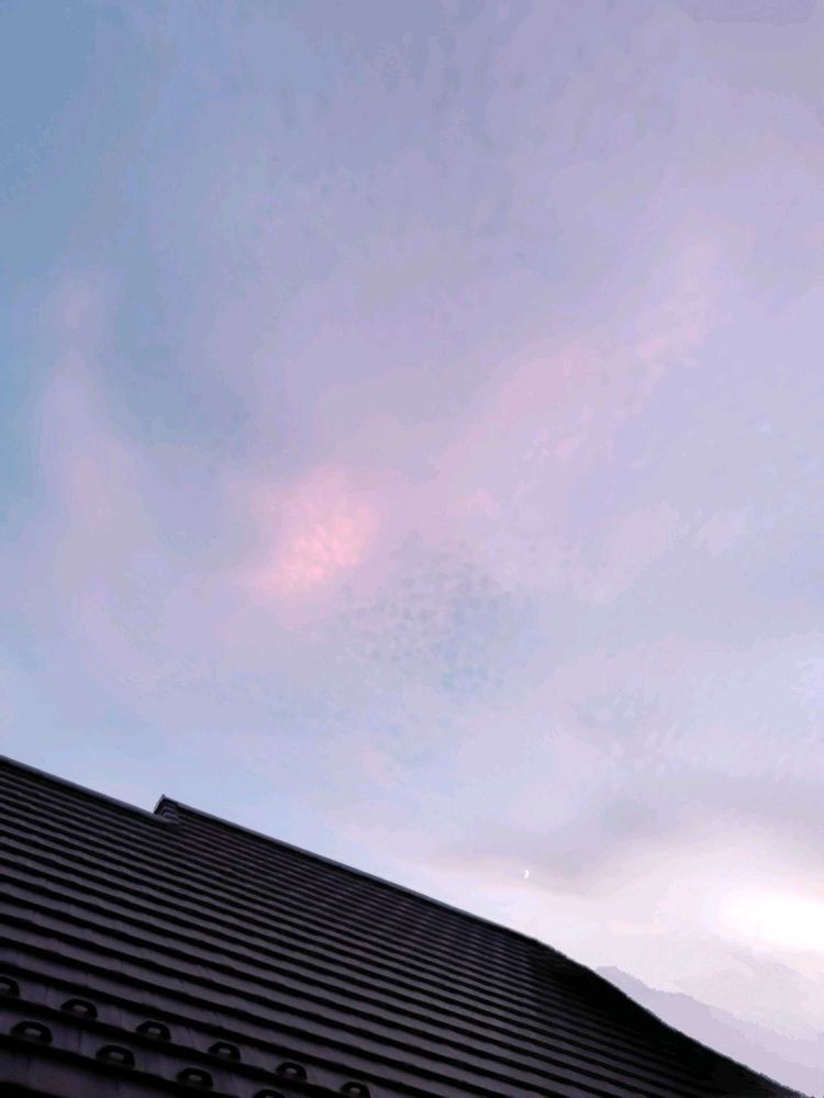 夕方…母の🏠️からの帰り道…妹と姪と3人で歩いている時には ひつじ雲が見えていましたが、帰宅し、バルコニーから ふと目を上げると…お月さまが優しく見守ってくれていました。。。