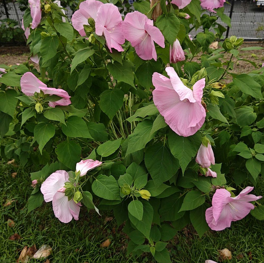 2枚め3枚めは、公園の大きなアメリカフヨウ。子供の顔位大きな花を咲かせてます。(2025/7/18撮影)