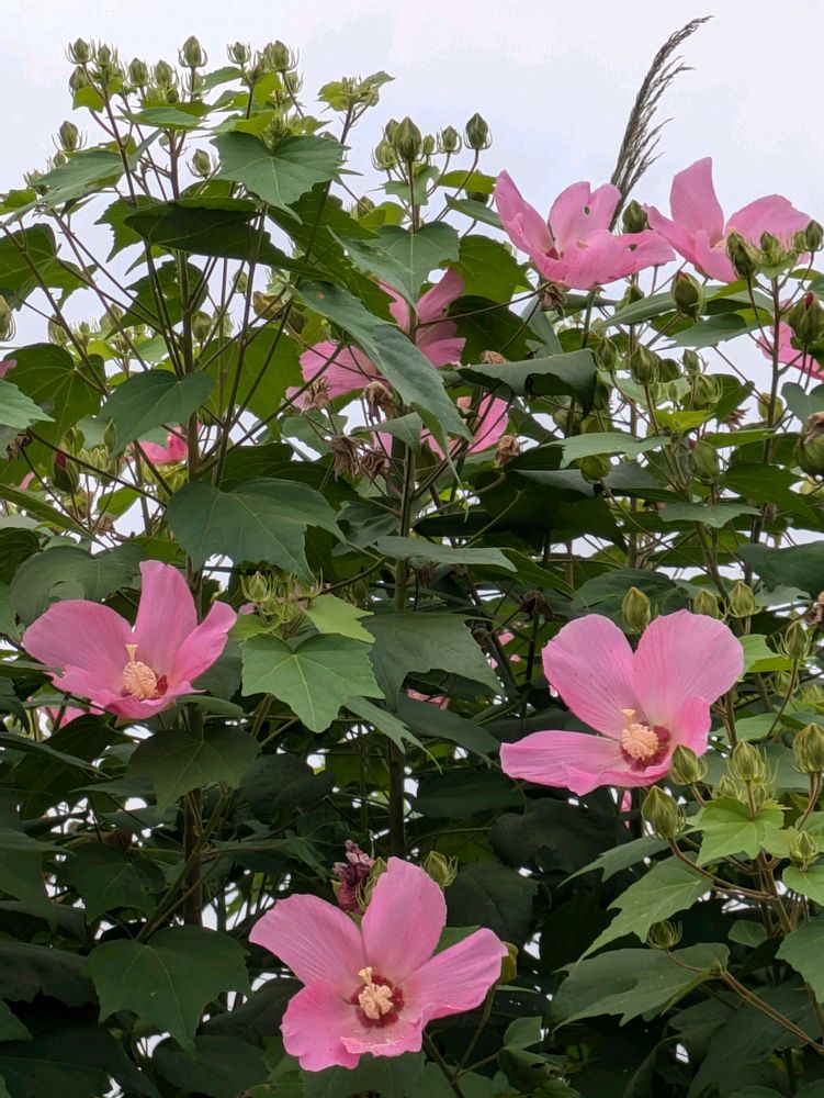 フヨウは手のひらのような大きな葉と、5本に分かれたカーブした雌しべが特徴とか