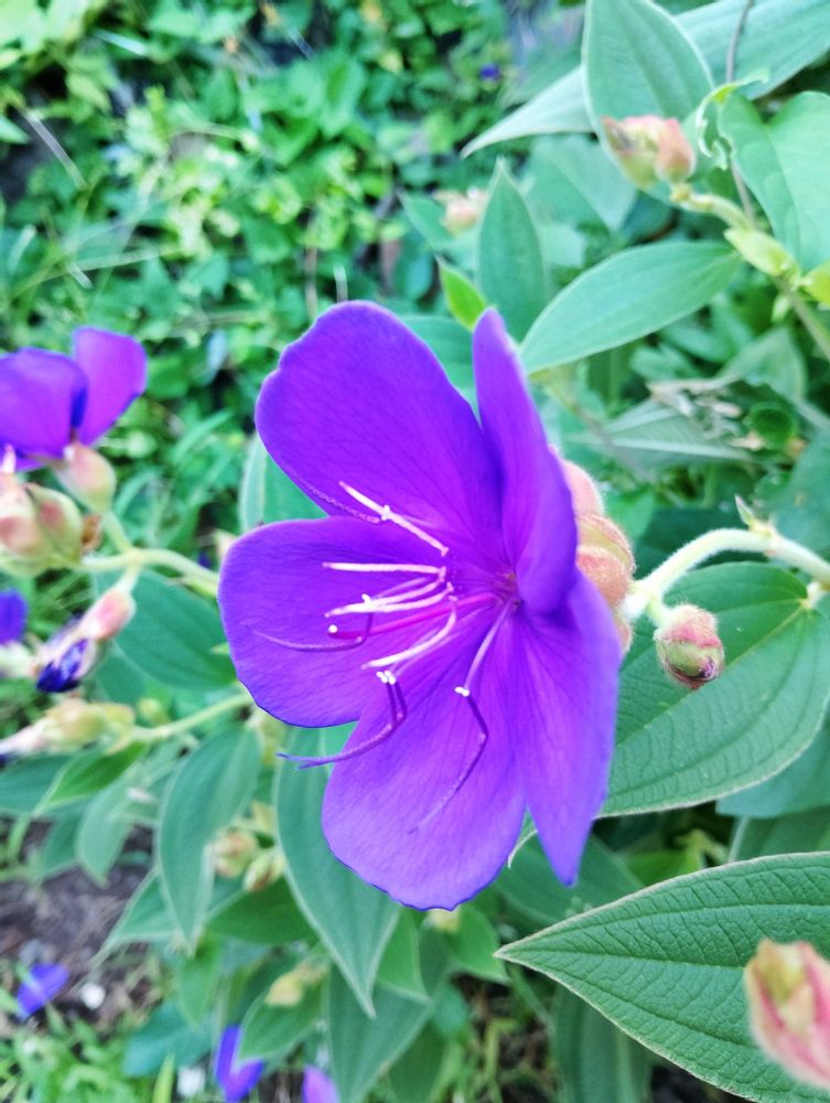 ビワの木の下で今からたくさん咲きそうです。💜💜💜💜