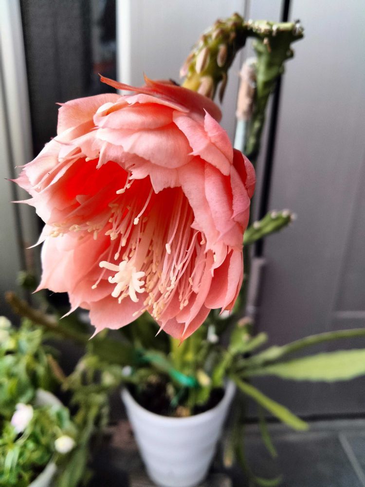 こんにちは。クジャクサボテンの花🌸綺麗ですね🥰 猛暑で生まれた土地の気候に近く感じたんでしょうか?力を振り絞って咲いた花、愛しいですね✨