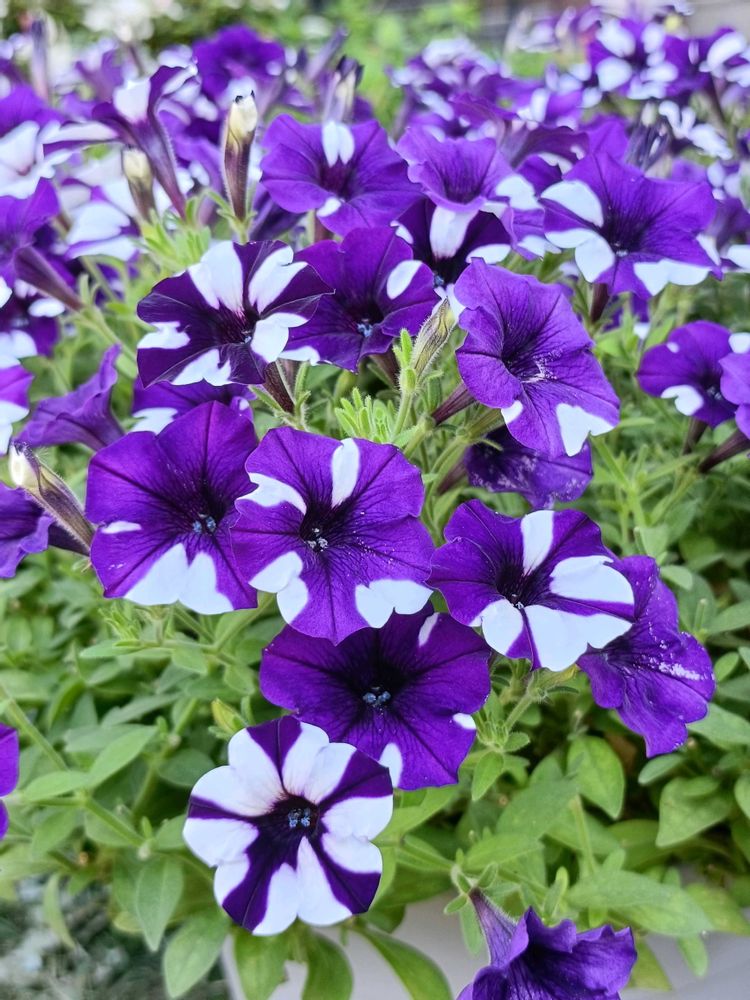 いちまつ、はじめの頃は紫一色で咲くことが多かったのですが、夏の盛り頃から白の柄が入り綺麗す✨✨✨