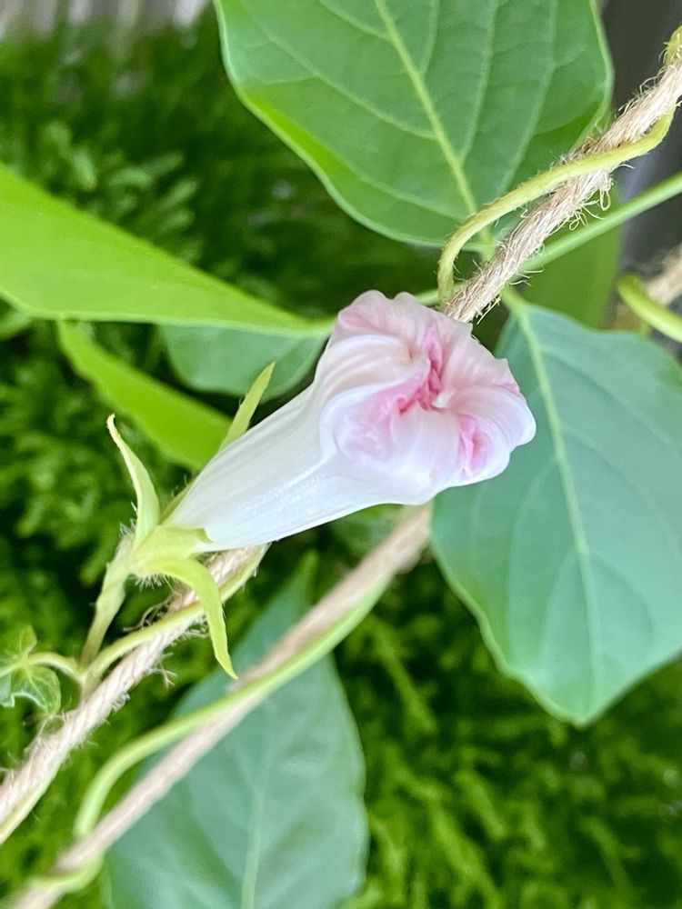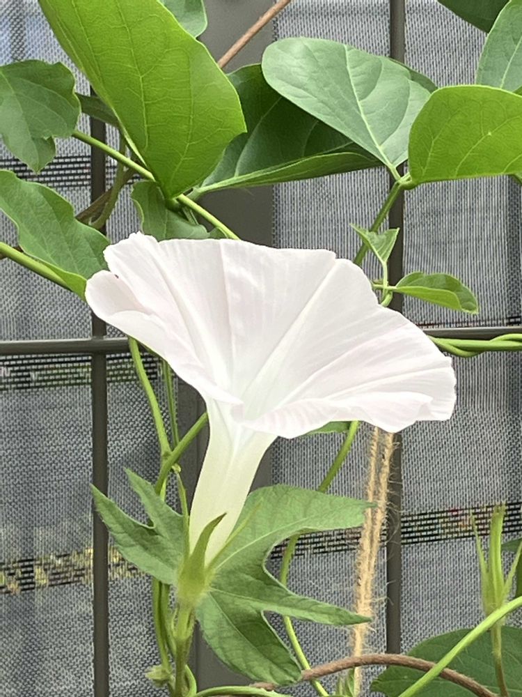 おはようございます☀️💦朝顔の雪、真っ白に見えて、咲き終わりが広げた花びらを戻して、ピンク色帯びていて可愛いです😍