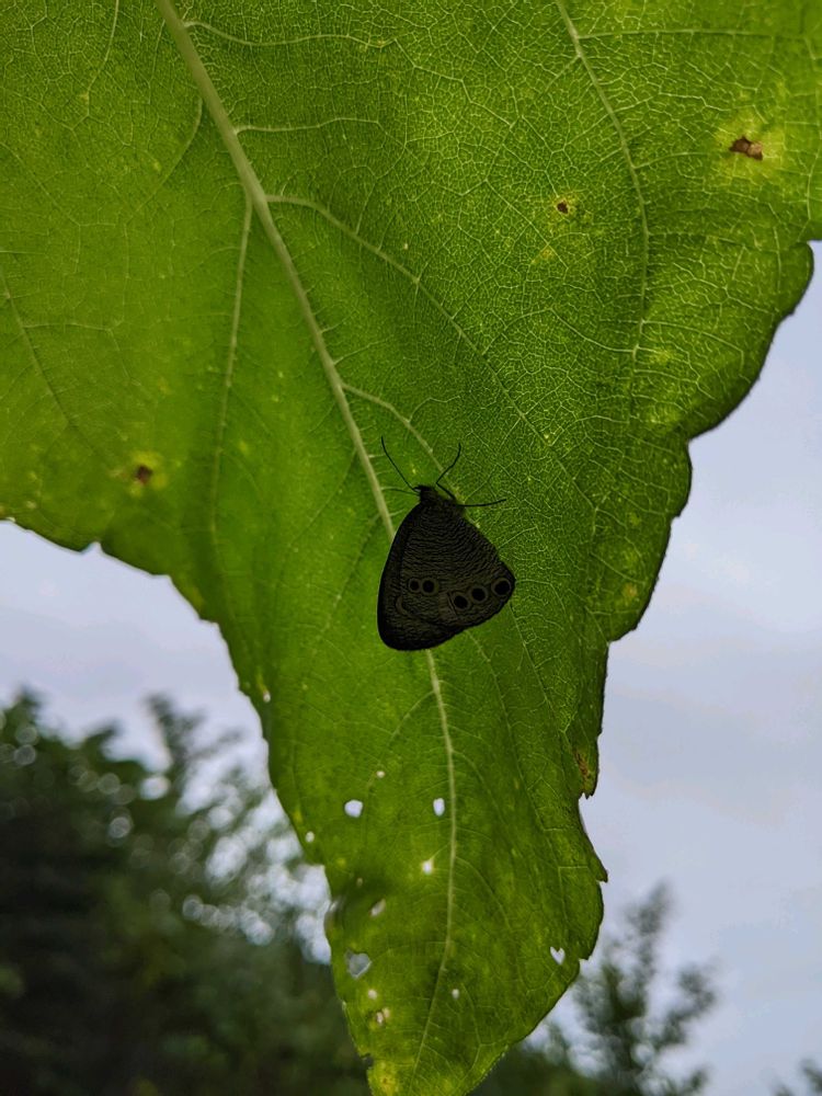 2枚目 ひまわりの葉の下で 雨宿りしている蝶が可愛かった♡