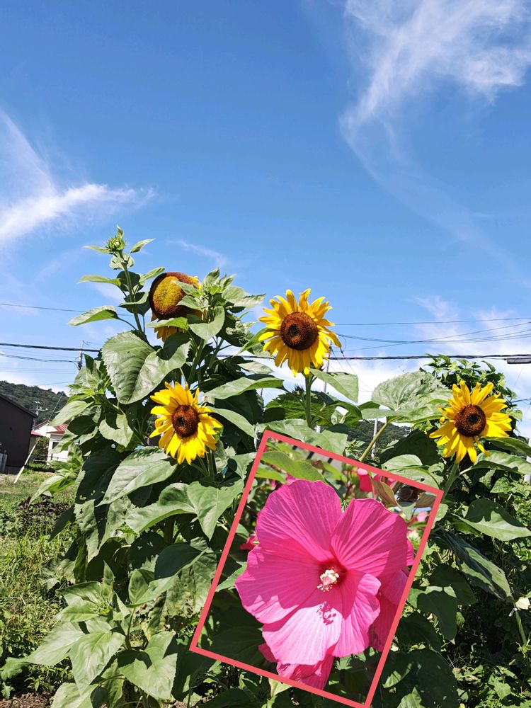 1️⃣ご近所さんの野菜畑の中の🌻と今日のお花