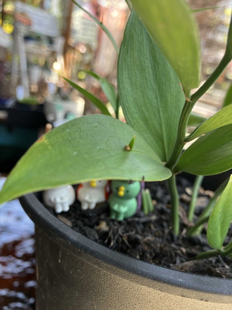 ルスカス👀❗葉っぱの真ん中何かある…病気…なんて思っちゃう😅アップで見ると何か芽と葉っぱありますね🤩