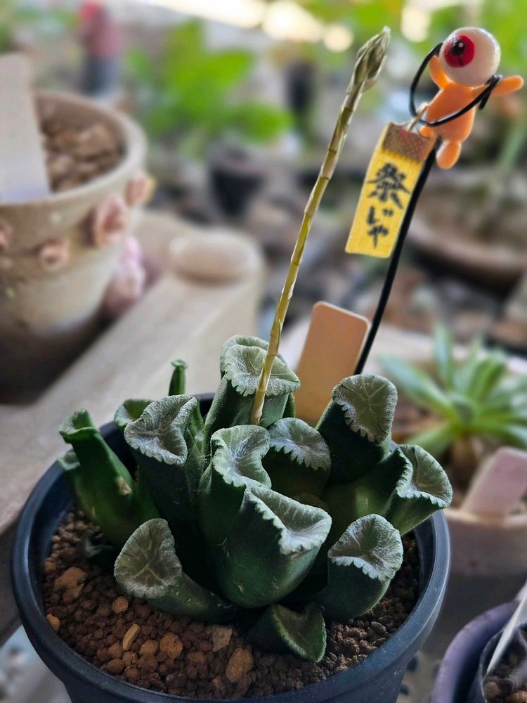 ※ハオルチア万象赤筋 × ミレニアムさんの花芽がビヨーンと👀