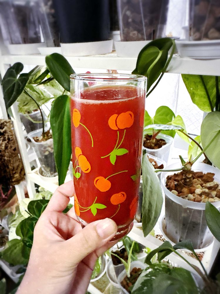 お気に入りのビンテージのアデリアのグラスでレッドアイを飲みました🍺🍅