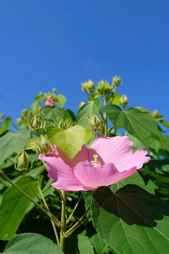 ピンクの芙蓉🩷青空に映えますねぇ😍😍綺麗…
