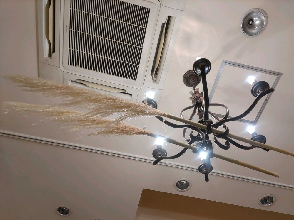 猫が狙うので シャンデリアに突き刺しています。