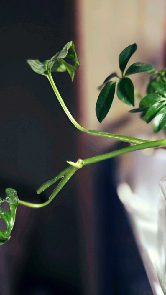 緊急速報!ついに発根しました。我が家のマドカズラ、茎からぷっくりと新芽が出て、根元には複数本の根が。頂き物なので枯らさないかヒヤヒヤしていましたが、これでひと安心。もう少し落ち着いたら土植えにしてあげたいです