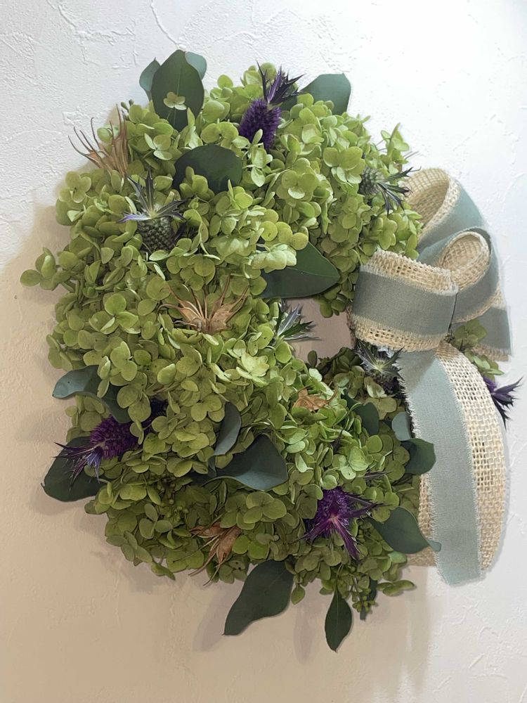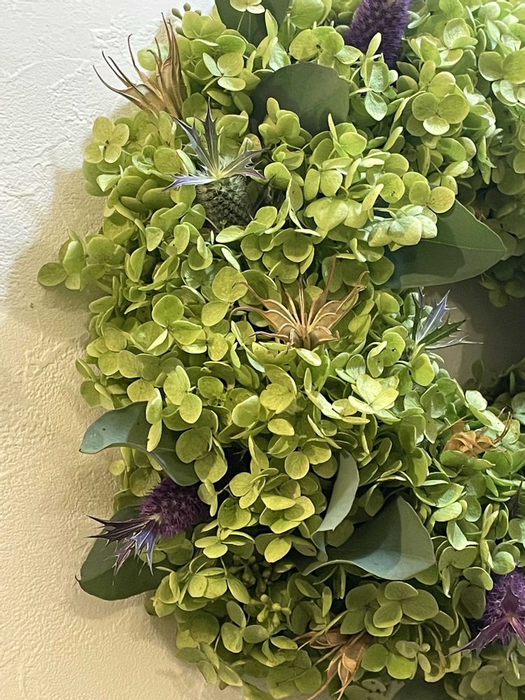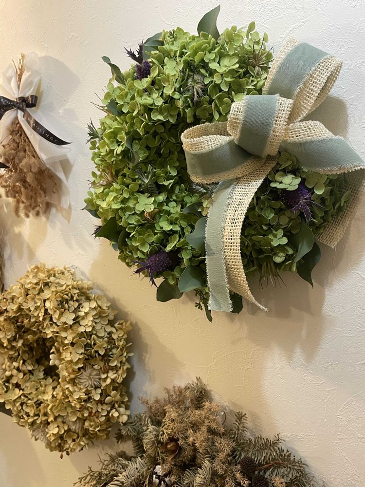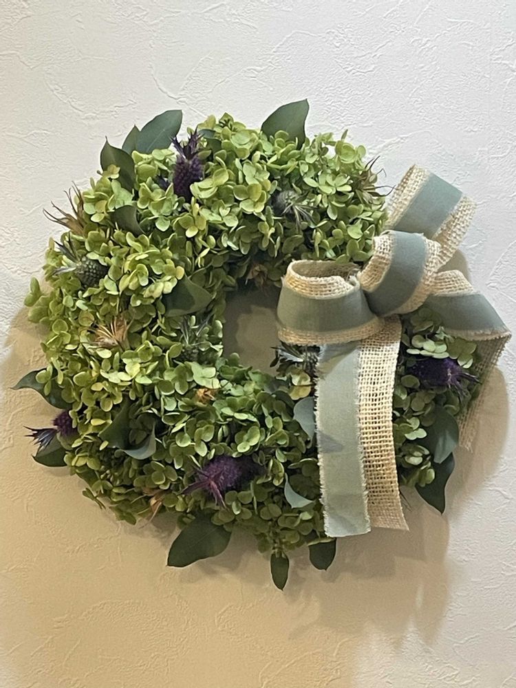 今年もいつものお花屋さんのワークショップで、アナベルリースを作りました😊🟢✨