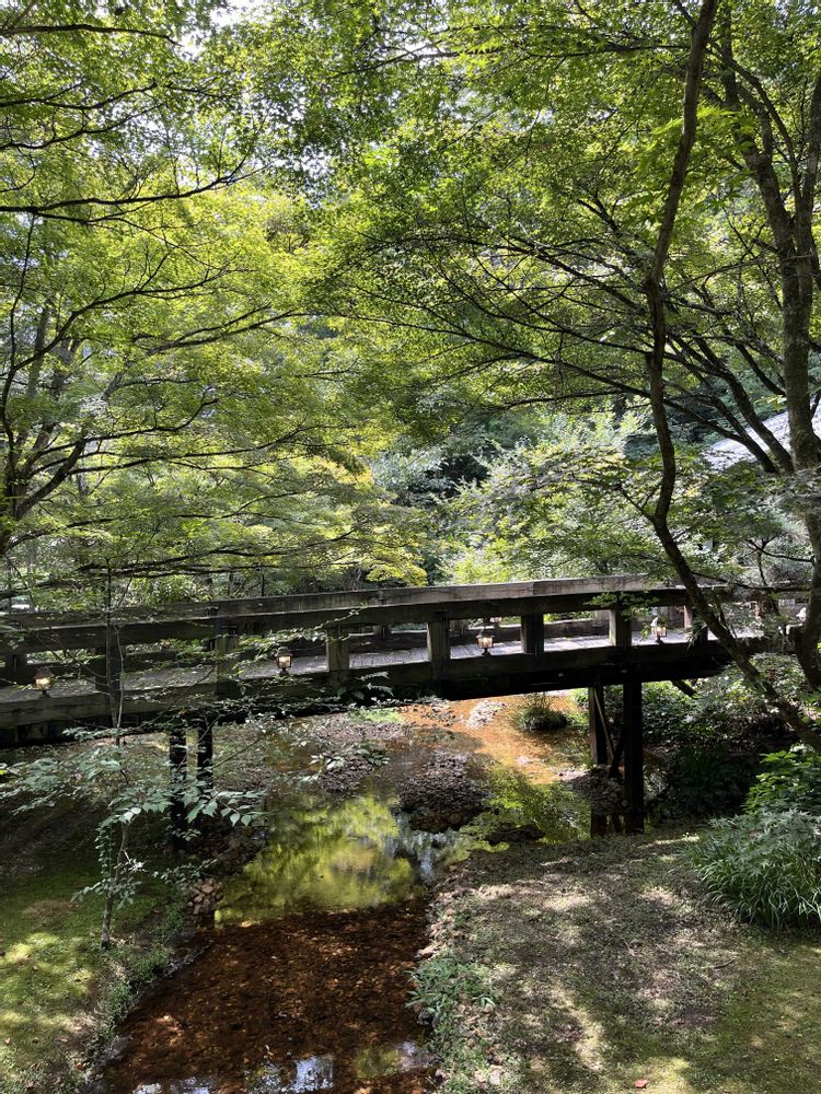 川が流れ橋を渡り緑色ののれん𓂅𓂅︎︎︎