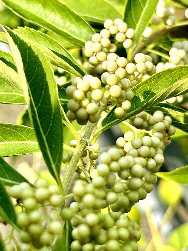 近所の散歩道の道路のコンクリートの隙間から、大きな木の、シロシキブの実がいっぱい付いていました🤗ムラサキシキブは昔、育てた事がありますが、シロシキブは見るのも初めてでビックリしました‼️3枚目が花です🌿⚪️🌿⚪️🌿