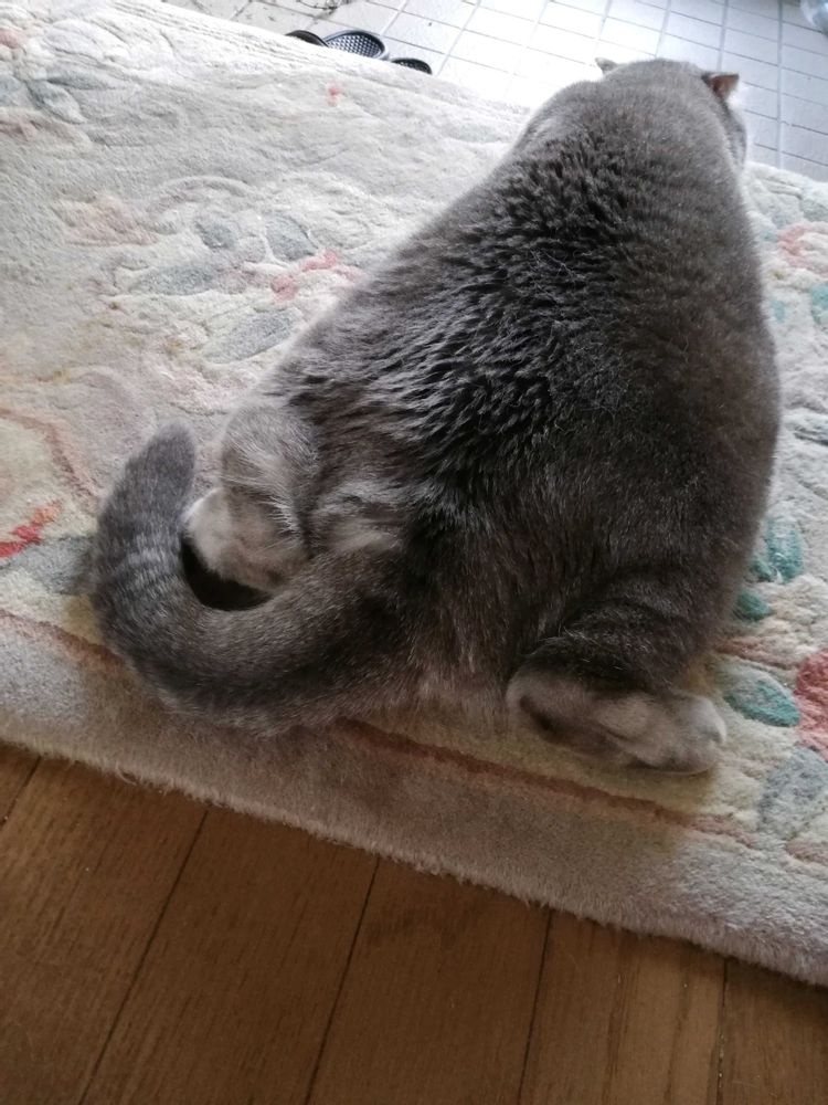 🐱はなちゃん 5匹中1匹だけ 開脚できるんです😅