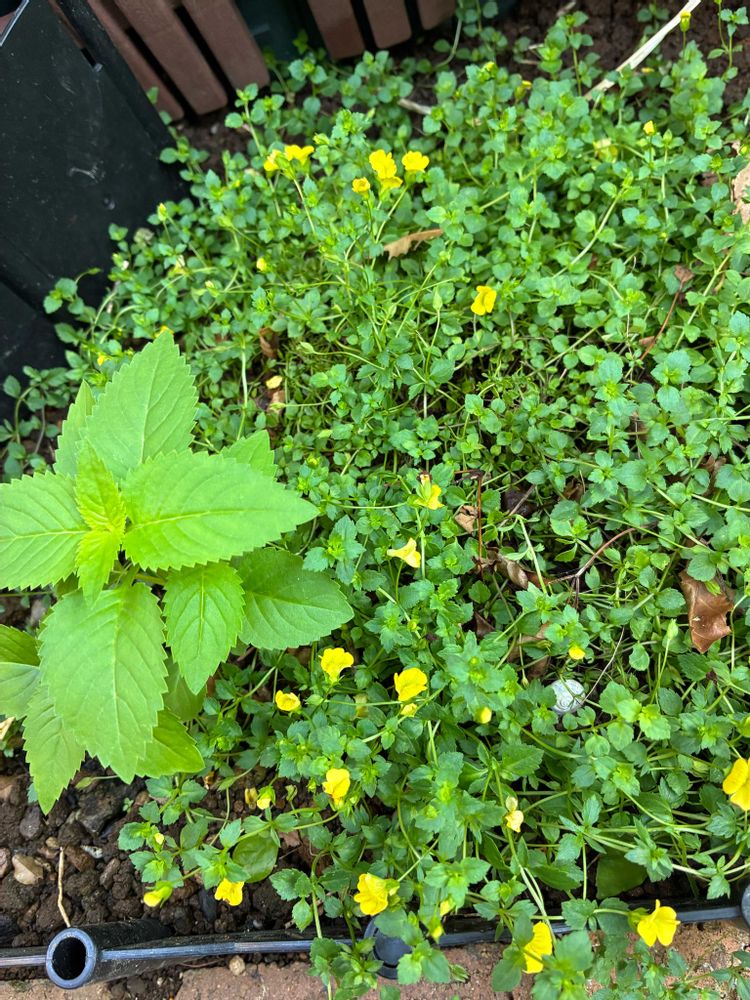 プラティアのグランドカバーにトレニア プラティア可哀想💦