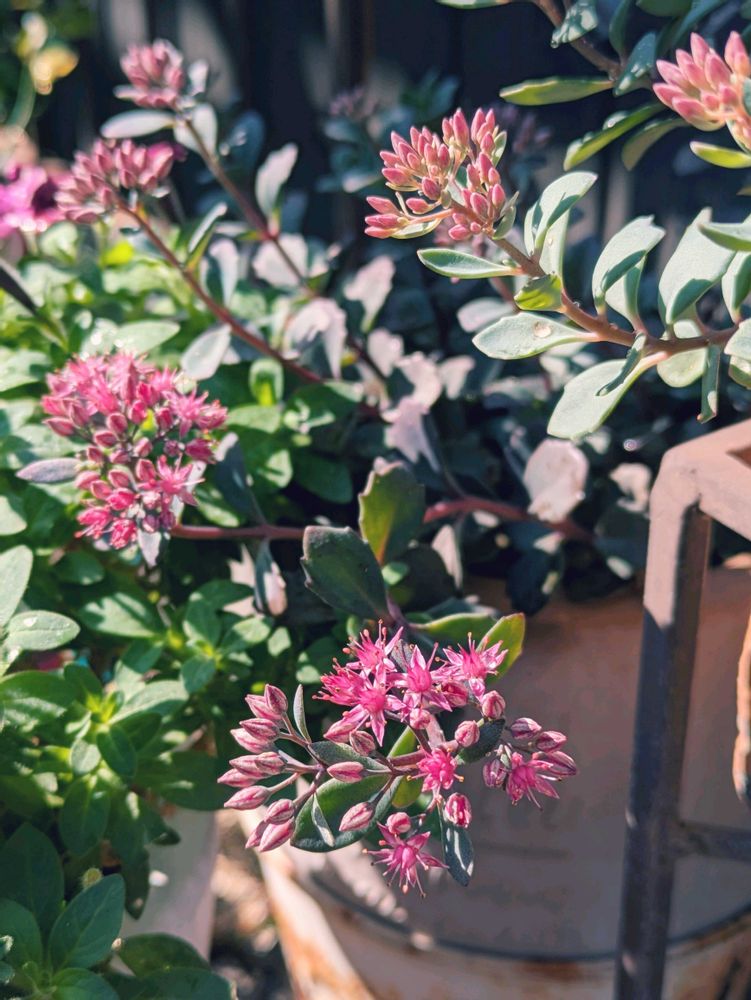 ベンケイソウの仲間です。多年草になるのかな?我が家ではカラスバミセバヤとヒダカミセバヤを育てています。ピンクの星屑みたいなお花がとても可愛いですよ。