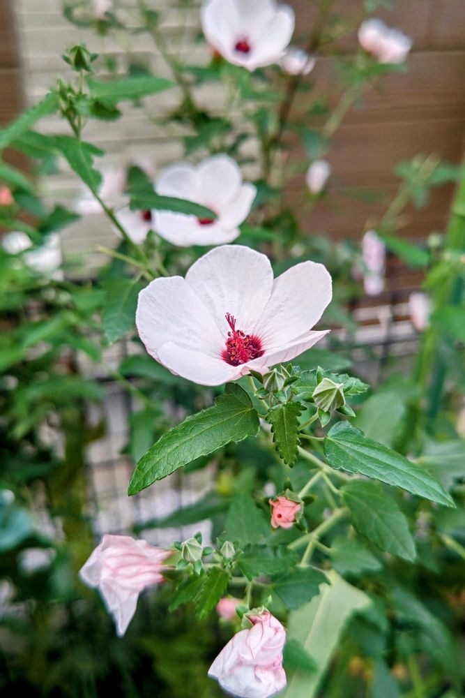 花ともさんの引っ越しで我が家にやって来たタカサゴフヨウ、今朝は30輪程咲いてました。