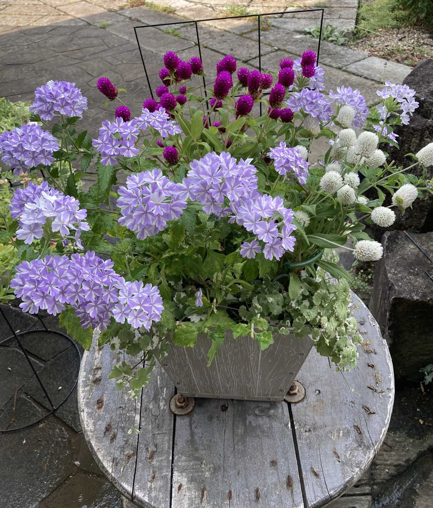 センニチコウミッテとスーパーベナアイストィンクルの寄せ植えです