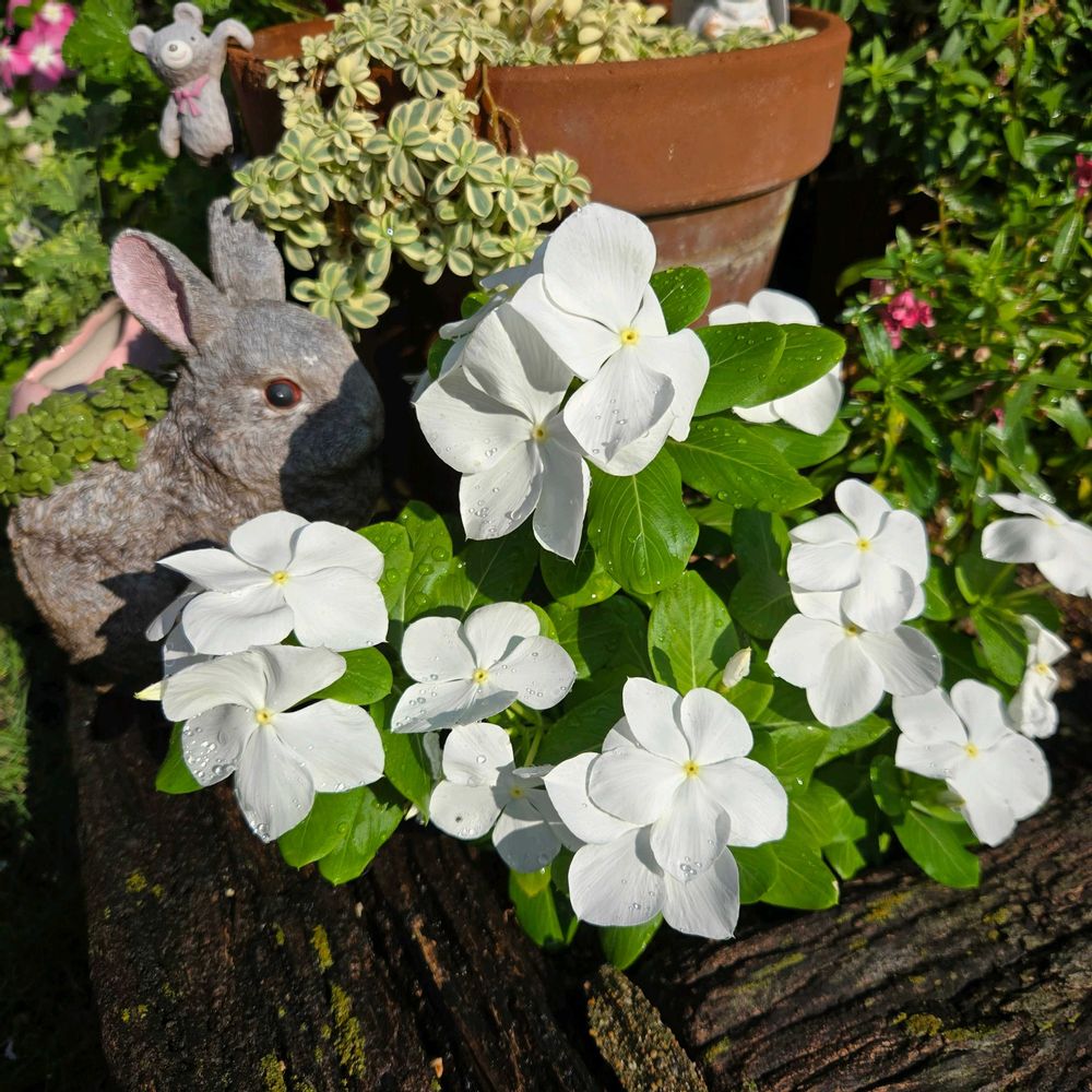 花壇のニチニチソウ🤍白色は涼しげで善き✨