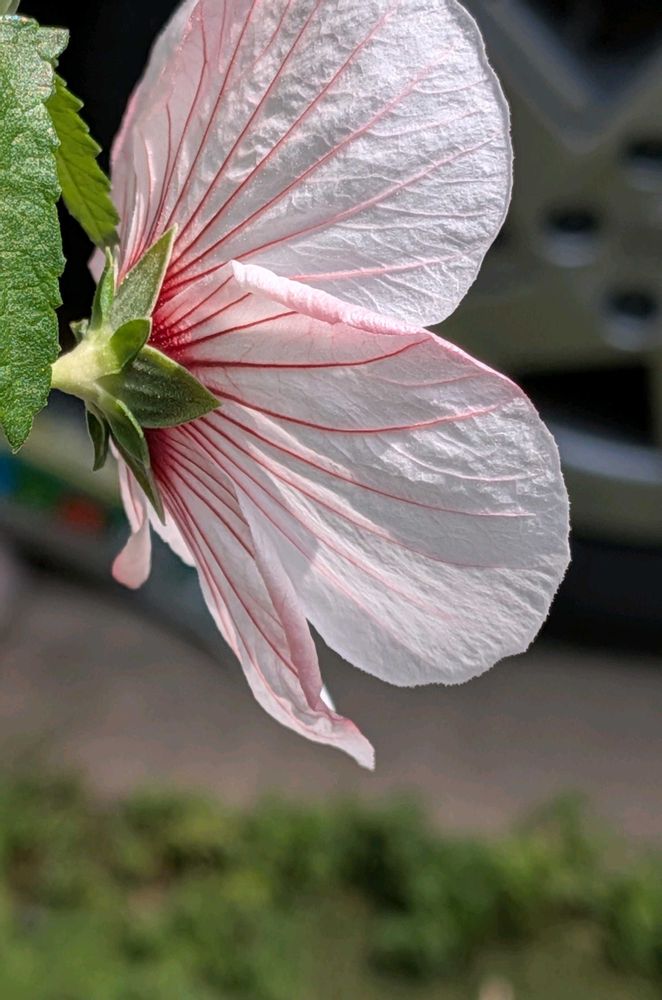 花弁の裏側に見られる赤い筋は、葉脈が浮き上がったものであり、花の表側からは見えませんが、その奥ゆかしい美しさが特徴です。