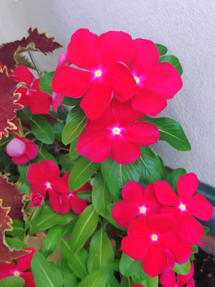 暑さに強いニチニチソウ。こぼれダネで小さな芽がいくつか出ていてしばらく楽しめそうです♥️赤は元気をもらえます。