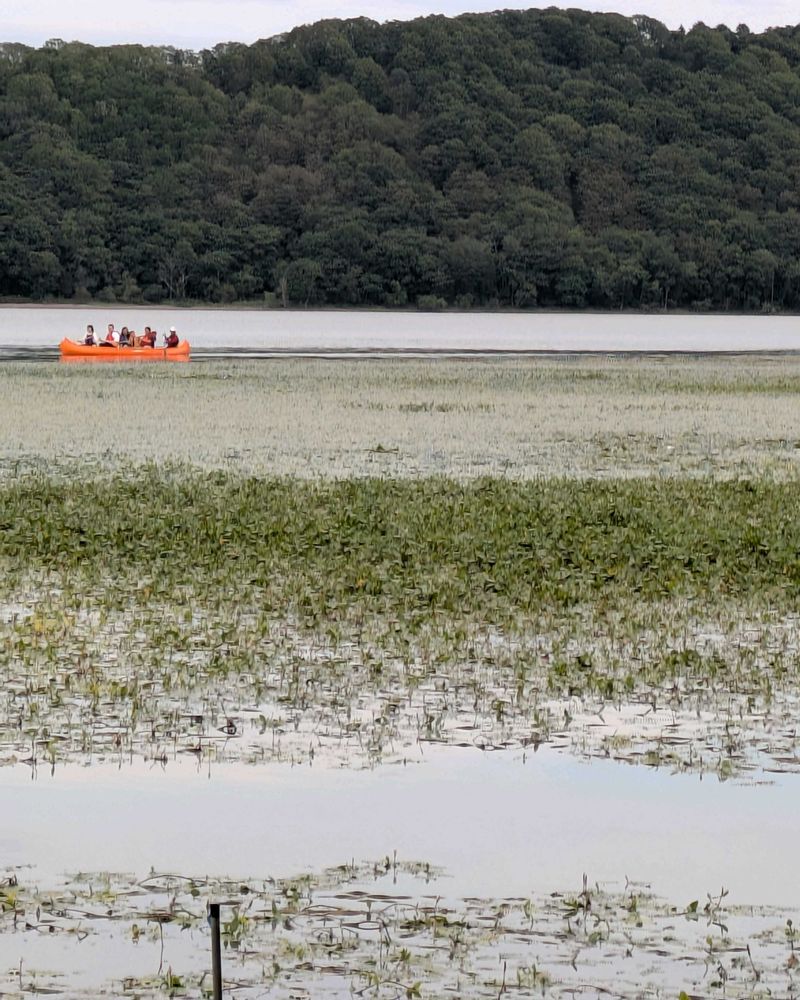 ⑤塘路湖 水面に浮かぶ植物は「ヒシ」