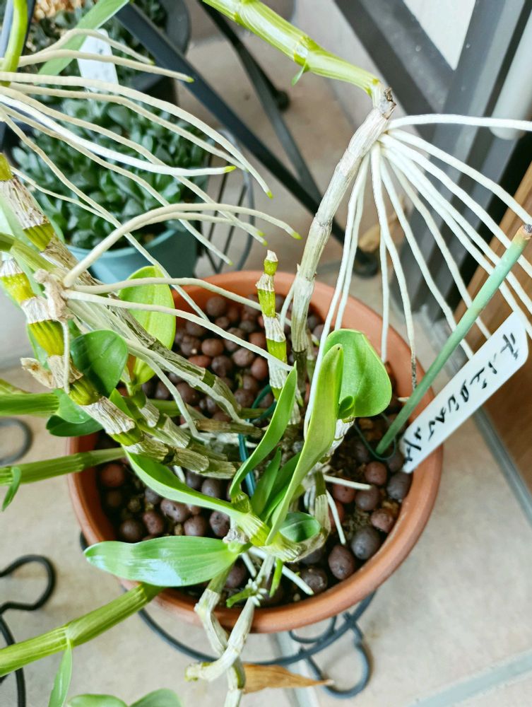 ○デンドロビューム元気ですが これは何?!気根ですか? この後どうすれば良いのかな…🤔🤔